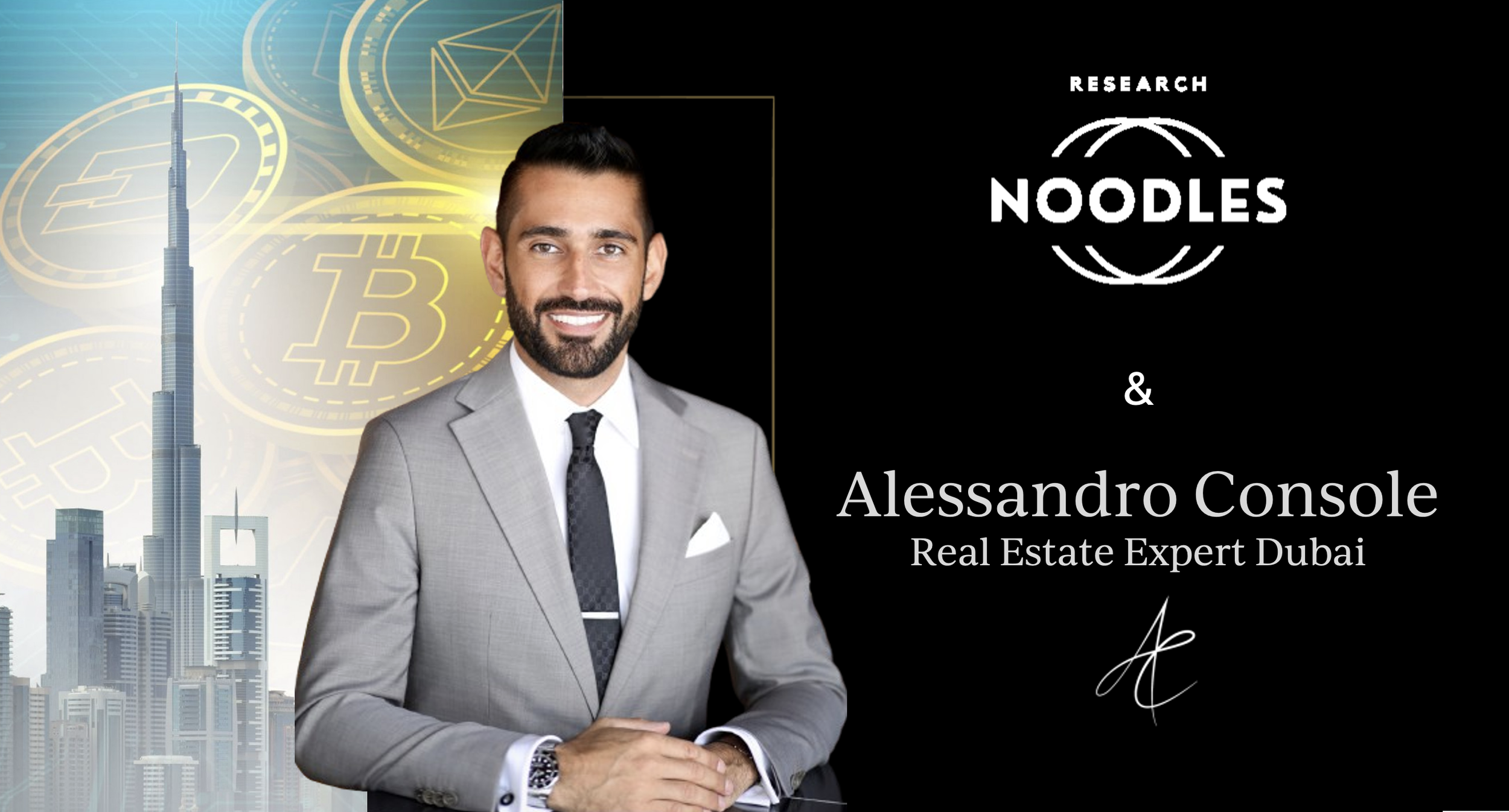 We are pleased to announce the partnership between digital researcher and influencer Noodles Research, expert in investments and cryptocurrencies, and Alessandro Console, Senior Broker in Dubai’s Real Estate market.